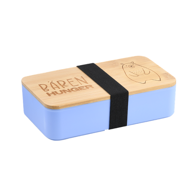 Die Brotdose „Bärenhunger“ von F. Anton Kesper GmbH ist ideal für Schule, Kindergarten oder unterwegs. Die Dose besteht aus robustem, lebensmittelechtem Kunststoff, während der Deckel aus FSC®-zertifiziertem Bambus gefertigt ist und durch den dekorativen Einbrand „Bärenhunger“ begeistert. Ein praktischer Gummiverschluss sorgt für einen sicheren Halt des Deckels.
