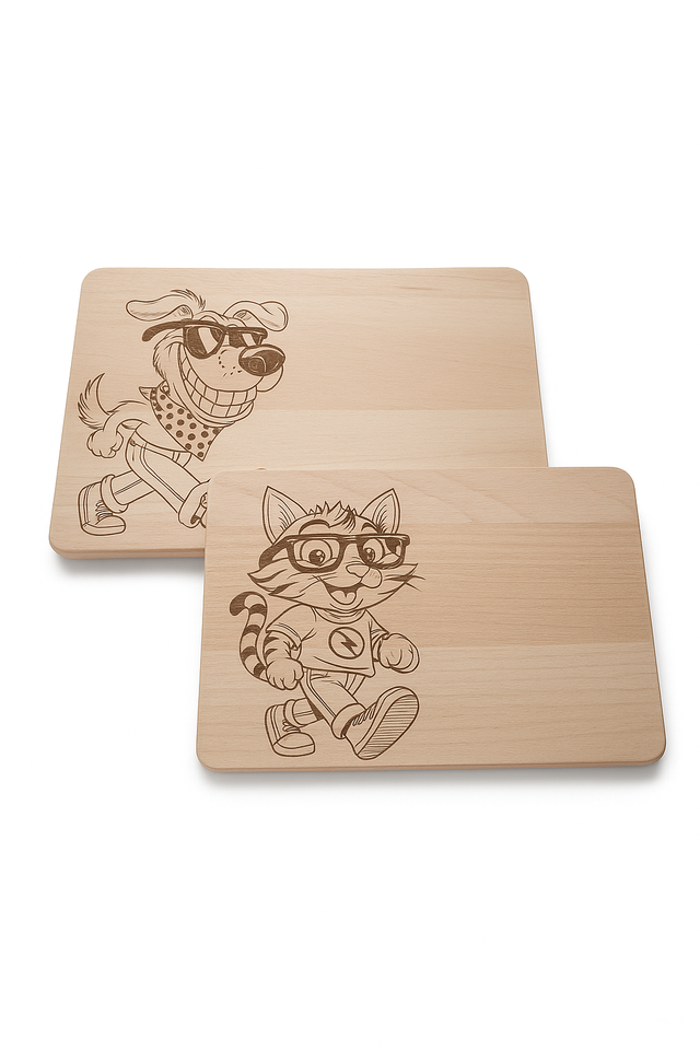 Hochwertiges Frühstücksbrettchen aus Buchenholz mit individueller Lasergravur wahlweise„ Katzen oder Hunde Comic Motiv“. Das Brett stammt ursprünglich von der Firma Zeller und wird von uns in eigener Verantwortung graviert. Die Gravur erfolgt ausschließlich auf Original-Zeller-Produkten. Zeller Present Handels GmbH steht in keiner geschäftlichen Verbindung zu unserer Gravur-Dienstleistung.