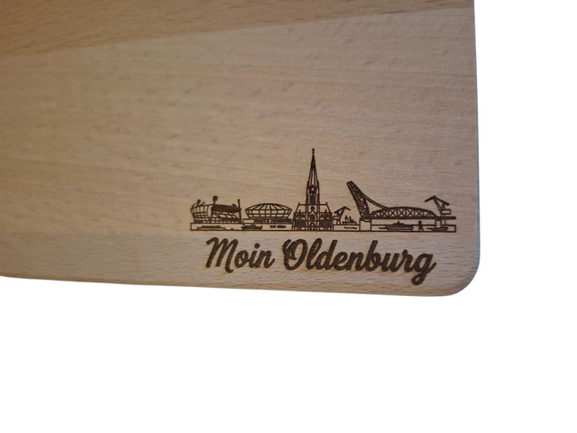 Hochwertiges Frühstücksbrettchen aus FSC®-zertifiziertem Buchenholz mit individueller Lasergravur „Moin Oldenburg“. Das Brett stammt ursprünglich von der F. Anton Kesper GmbH und wird von uns in eigener Verantwortung graviert. Die Gravur erfolgt ausschließlich auf Original-Kesper-Produkten. Die F. Anton Kesper GmbH steht in keiner geschäftlichen Verbindung zu unserer Gravur-Dienstleistung.