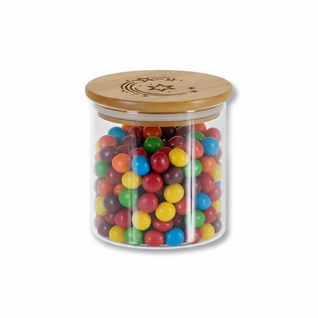 Dieses personalisierte Aufbewahrungsglas mit 550 ml Fassungsvermögen und Bambusdeckel aus FSC®-zertifiziertem Material hält Ihre Lebensmittel dank des luftdichten Verschlusses besonders frisch. Das stapelbare, transparente Design erleichtert die Vorratskontrolle und spart Platz in der Küche.